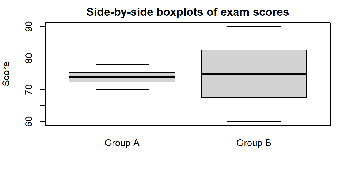 Boxplots align multiple groups on the same axis, allowing you to compare medians, the spread of the middle half (box length), the overall range (whisker length), and skewness (relative whisker lengths) at a glance. This makes it easy to see which group has a higher central tendency, more variability, or more extreme values.